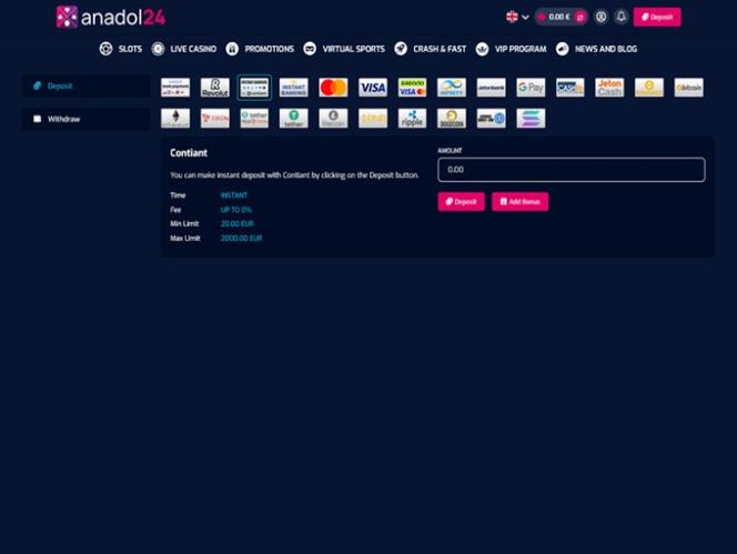 Um dos principais atrativos do Anadol24 é seu extenso plano promocional, que oferece inúmeros bônus e promoções criados para aprimorar suas sessões de jogo. Os jogadores poderão reivindicar uma oferta de boas-vindas, vários bônus semanais ou participar do programa de fidelidade exclusivo para convidados, repleto de diversas recompensas.