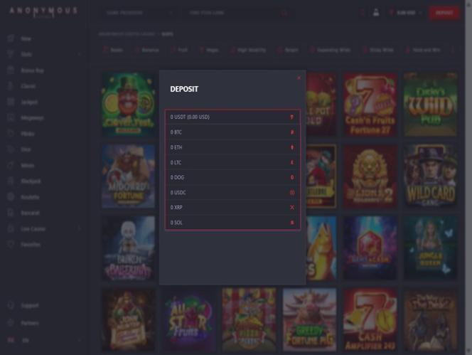 O Anonymous é um cassino exclusivo para criptomoedas, sem necessidade de verificação , e, como você pode imaginar, o processo de cadastro não poderia ser mais simples. Para se tornar membro, você precisará dedicar apenas alguns segundos para preencher seu endereço de e-mail e escolher uma senha. Ao acessar o painel do jogador, você perceberá que tudo é bastante intuitivo e acreditamos que navegar por aqui será muito fácil.