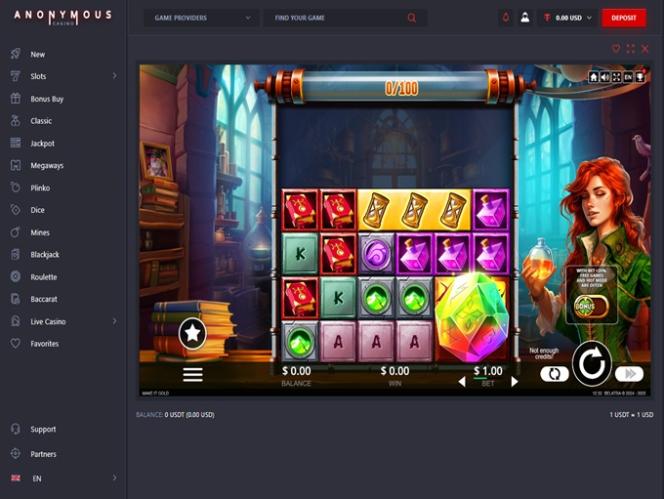 O Anonymous Casino é um cassino online operado por uma empresa experiente em iGaming e voltado para jogadores da Alemanha, Canadá e Nova Zelândia. Para maior comodidade dos jogadores, o site está disponível em alemão, inglês, espanhol, norueguês, português e russo . Observe que, no momento da nossa visita, esta marca operava sem licença de jogo.