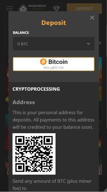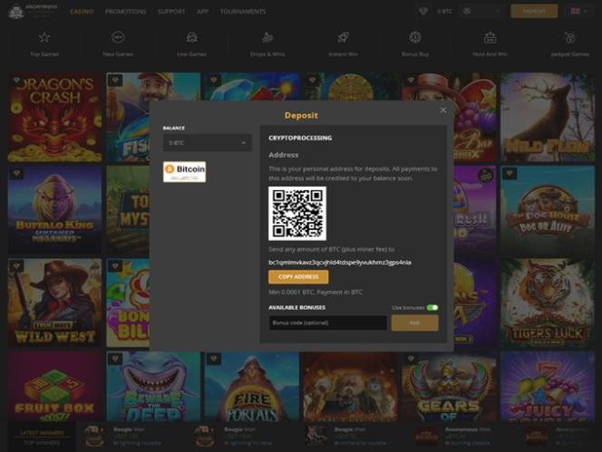Opções bancárias no Anonymous Casino