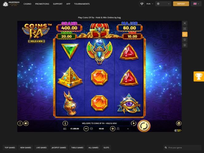 Capturas de tela do Anonymous Casino