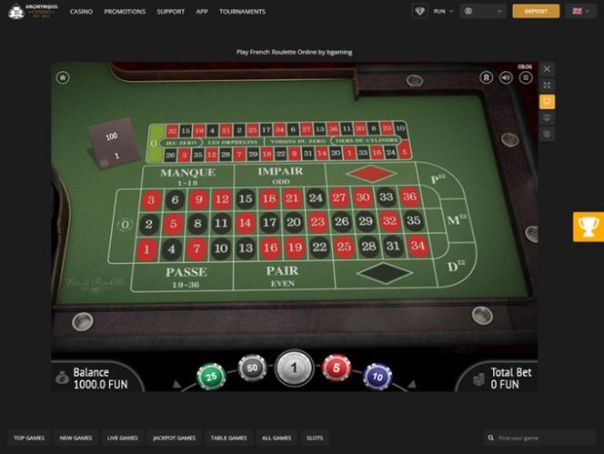 Anonymous Casino não recebeu o endosso do Wizard of Odds.
