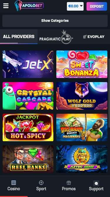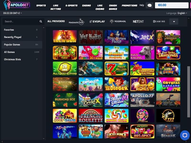 Como o setor de iGaming é extremamente competitivo, para os operadores de jogos de azar online é crucial encontrar os parceiros certos que possam fornecer o conteúdo adequado para o público do cassino. A ApoloBet colabora com alguns dos desenvolvedores de software de cassino online mais renomados, incluindo grandes nomes como Evolution Gaming, Pragmatic Play, Yggdrasil e muitos outros.