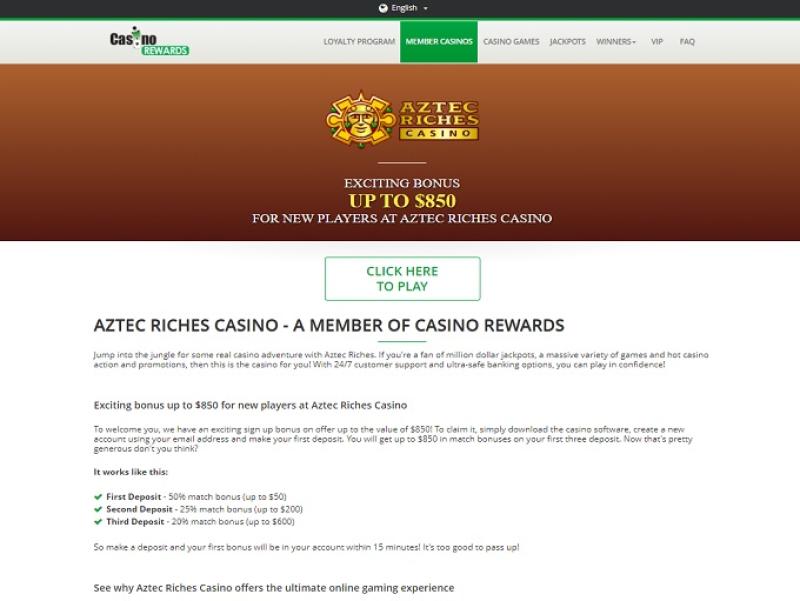 O Aztec Riches é um cassino online que conquistou uma base de jogadores fiel ao longo dos últimos anos. O cassino pertence à Casino Rewards, que administra diversos outros sites de apostas online, como o Players Palace e o UK Club Casino. O cassino é geralmente bem avaliado, com jogadores elogiando o Aztec Riches por sua vasta biblioteca de jogos e excelente suporte ao cliente, embora critiquem os limites de saque para ganhos não progressivos.Informações do cassino