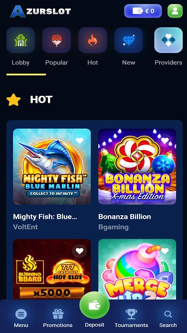 Note que a coleção de jogos do AzurSlot é fornecida por marcas renomadas como Evolution Gaming, Microgaming, Quickspin, Relax Gaming e muitos outros estúdios de jogos. Não deixe de conferir não apenas seus jogos favoritos, mas também os novos jogos adicionados regularmente à coleção.