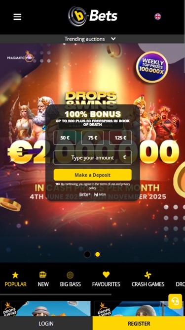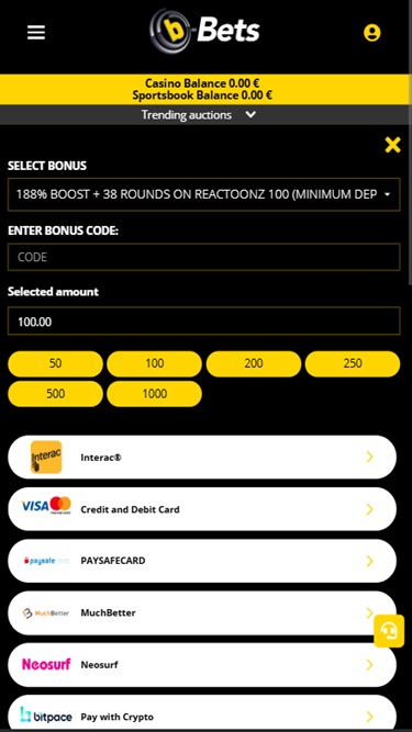 A b-Bets é um site de apostas online que oferece jogos de cassino ao vivo e jogos tradicionais aos seus clientes. Com sede na Costa Rica, o site possui uma vasta biblioteca de jogos e estúdios de alta qualidade que transmitem dealers muito atraentes diretamente para a sua tela. Embora os bônus pareçam ter requisitos de apostas elevados, o cassino é geralmente elogiado pela sua boa gestão e pagamentos rápidos.