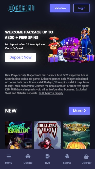 O BB Casino dá as boas-vindas aos novos jogadores com um pacote de bônus notável, válido para os três primeiros depósitos no cassino.