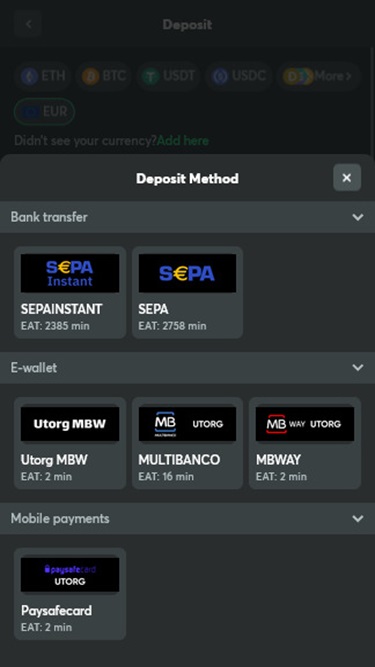 Como já mencionamos, esta marca de jogos de azar trabalha exclusivamente com criptomoedas, e existem muitas criptomoedas e opções de financiamento disponíveis.