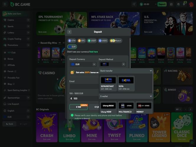 Muitos provedores e muitos jogos BC originais podem render a longo prazo. Bônus ocasionais de código de merda podem ser reivindicados até 3 BCD. Os depósitos deles sempre são processados. Uma vez eu depositei, mas o saldo não foi imediatamente atingido.