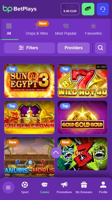 A seção de Slots do Bet Plays é a mais dominante e está repleta de títulos de slots online divertidos e envolventes, que serão atraentes e interessantes tanto para jogadores iniciantes quanto para os mais experientes em cassinos online.