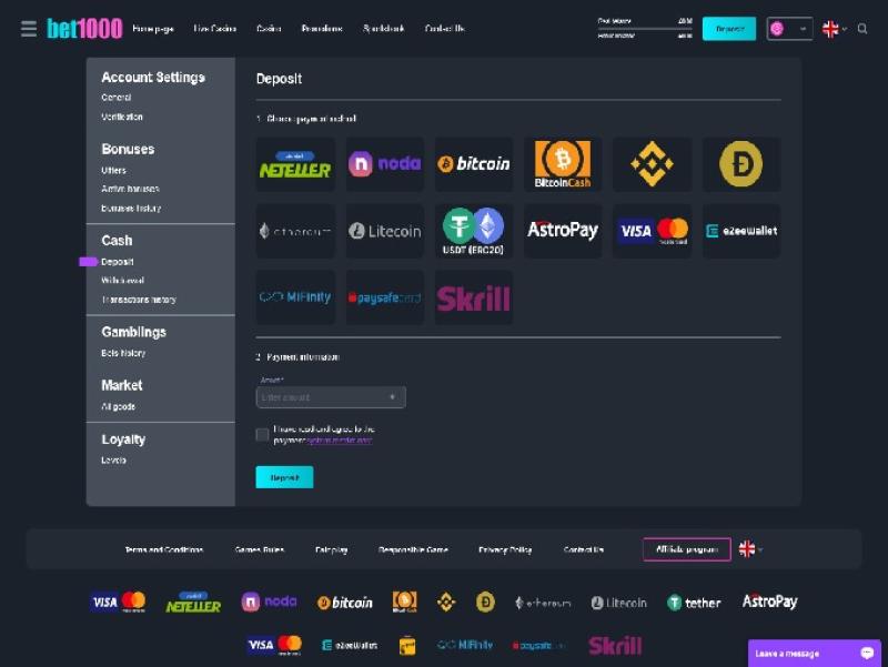 O Bet1000 Casino é operado e pertence a uma empresa experiente de iGaming, constituída sob as leis de Curaçao e licenciada e regulamentada pela Antillephone NV. Os jogadores da Noruega, Finlândia e Irlanda são o público-alvo da marca.