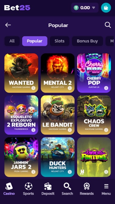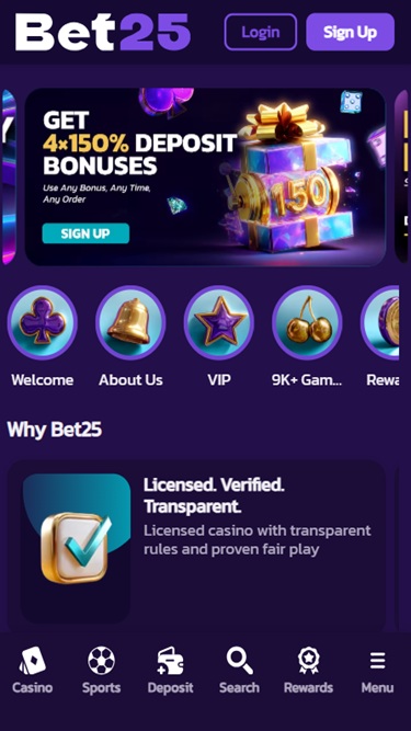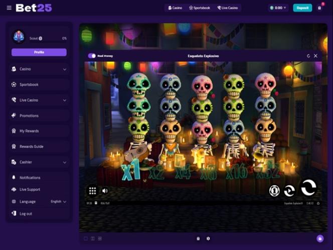 Fundada em 2025, a Bet25 é um dos principais cassinos online que aceita jogadores da Alemanha, Áustria, Finlândia, Canadá e Nova Zelândia, convidando-os a explorar sua vasta seleção de jogos de cassino e opções de apostas esportivas. A marca oferece milhares de caça-níqueis online, jogos com crupiês ao vivo, jogos de mesa e jogos instantâneos, além de diversas promoções e recompensas para seus jogadores.