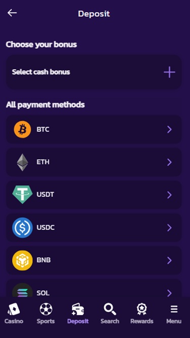 O cassino aceita exclusivamente criptomoedas.