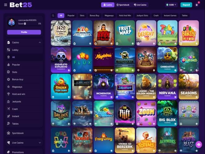 Independentemente do seu perfil de jogador, o Bet25 é um site de apostas que irá satisfazer facilmente todas as suas necessidades de jogo. A marca apresenta uma seleção impressionante de jogos de casino e a equipa obteve licenças de mais de 90 fornecedores de software , a maioria dos quais considerados entre os melhores.