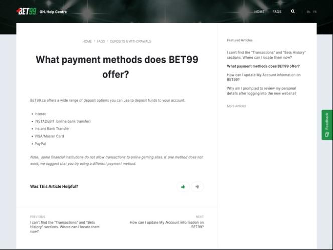 O BET99 Casino Ontario é uma operadora de apostas esportivas online e cassino, pertencente a uma empresa licenciada e regulamentada pela Comissão de Álcool e Jogos de Ontário (AGCO). Os jogadores de Ontário são o principal público-alvo da marca.