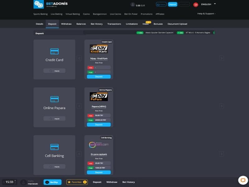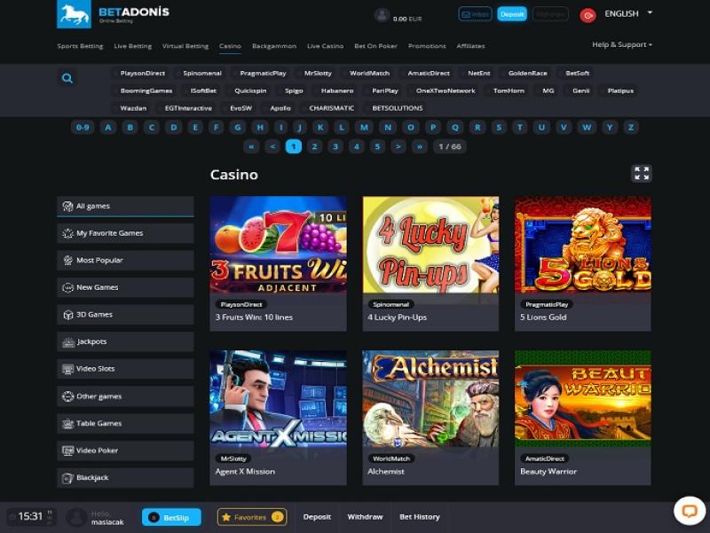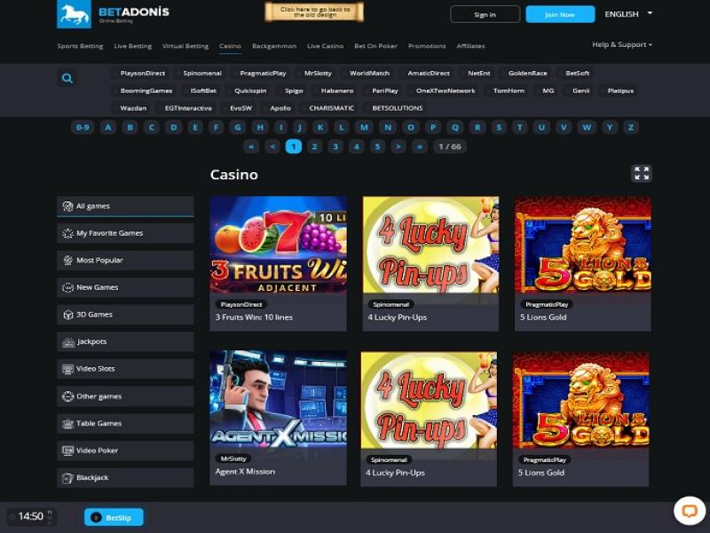 Desde 2013, o Betadonis Casino oferece uma gama diversificada de opções de apostas aos seus clientes. O site conta com uma seção completa de apostas esportivas, cassino e sala de pôquer, e conquistou uma base sólida de usuários graças à sua grande variedade de jogos, bônus generosos e um sistema bancário eficiente.Informações do cassino