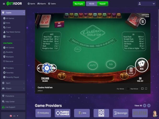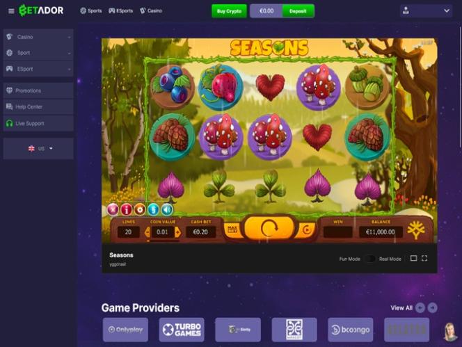 Embora o design geral seja mais voltado para as necessidades e preferências dos apostadores esportivos, e a organização das categorias do cassino pudesse ser um pouco melhor, o Betador Casino tem um ambiente agradável e os jogadores poderão ter uma boa experiência de jogo aqui.