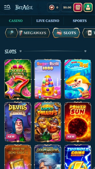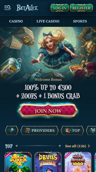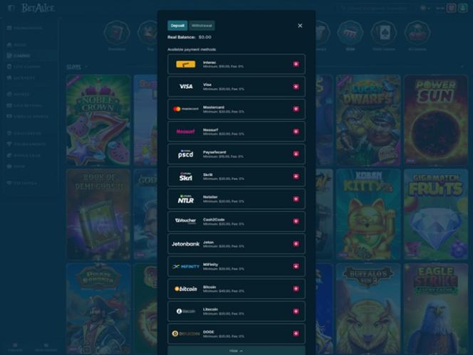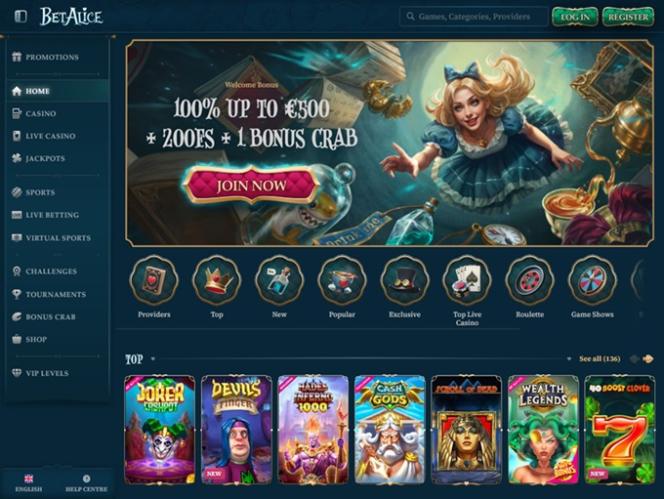 A BetAlice inclui seções de Cassino, Cassino ao Vivo e Esportes , para que os jogadores tenham a oportunidade de explorar vários gêneros de cassino, experimentar diferentes tipos de bônus e participar de um programa VIP.