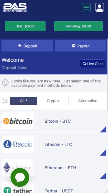Opções bancárias no BetAnySports
