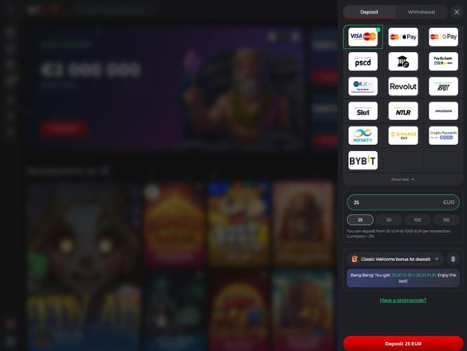 Disponível na segunda-feira. Depósito mínimo: 50 EUR. Você deve ter feito pelo menos 2 depósitos desde que se cadastrou no cassino.