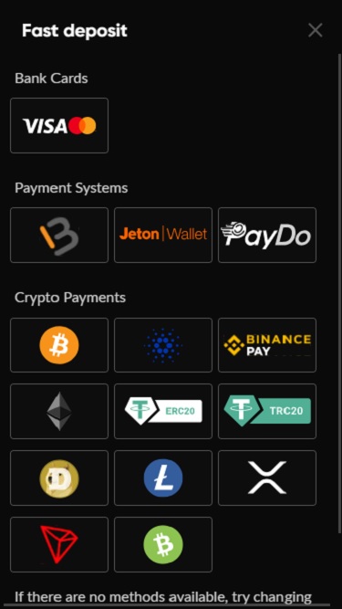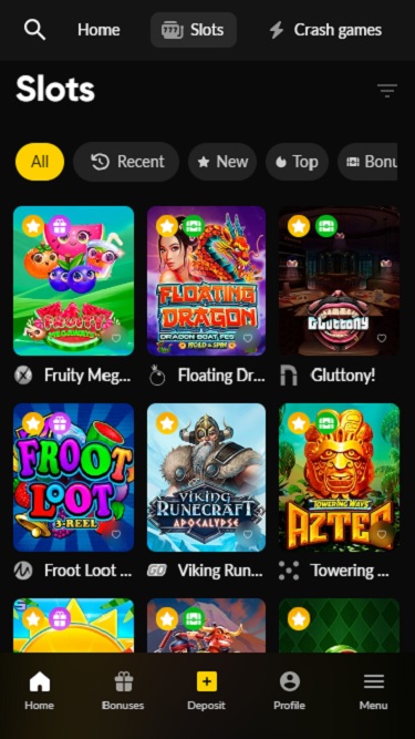 Os jogos disponíveis estão organizados em seções interessantes: Caça-níqueis, Jogos de Crash, Jogos Rápidos, eSports, Cassino ao Vivo, Bingo, Jogos de TV... As seções estão repletas de títulos populares de cassino e estamos ansiosos para conferi-los: