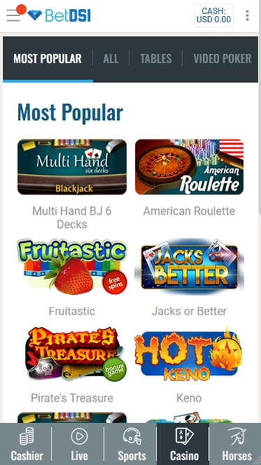 A oferta de slots da BetDSI é decente, embora inclua principalmente jogos mais antigos. Isso facilita o início imediato nos jogos, já que eles não apresentam os recursos de bônus complexos e impressionantes que costumam ser encontrados em slots modernos.
