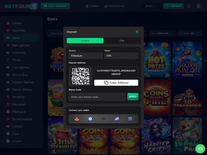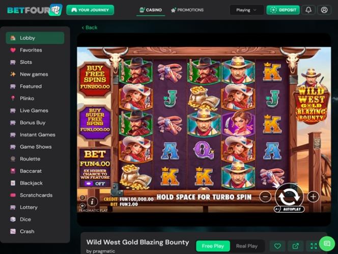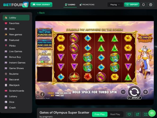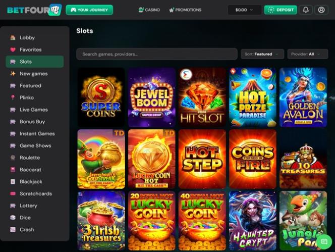 A plataforma do cassino BetFourU possui um layout intuitivo e a navegação pelas páginas é bastante simples. Além de um generoso pacote de boas-vindas, os jogadores podem contar com diversas opções de pagamento e uma vasta coleção de jogos.