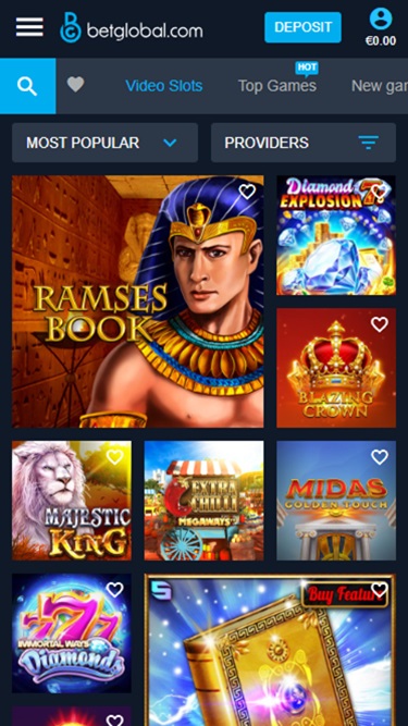 Se você gosta de jogos de caça-níqueis online, encontrará uma seleção incomparável no BetGlobal Casino. Entre os títulos mais populares, vale a pena conferir: Ramses Book, Diamond Explosion 7s, J Mania Golden Eggs, Majestic King, Extra Chilli Megaways, Immortal Wave Diamonds, Blazing Crown, Book of Demigods II, Lady Wolf Moon Megaways, Midas Golden Touch e Crazy Diamonds.