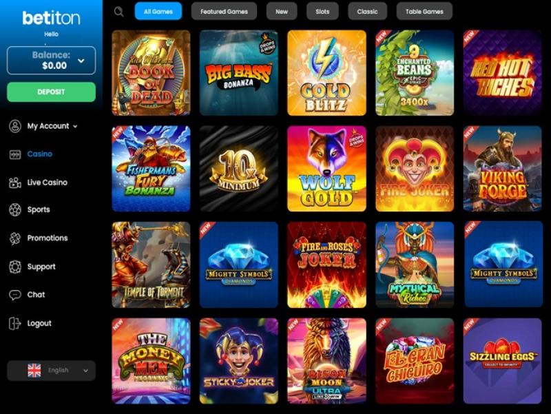 Pouco mais de 40 fornecedores de software renomados fornecem o entretenimento para o Betiton. O lobby de jogos do cassino está repleto de caça-níqueis, jogos de mesa e jogos com crupiê ao vivo da Play'n Go, Wazdan, Red Tiger, iSoftBet , Evolution Gaming, Pragmatic Play, NetEnt e muitas outras empresas.