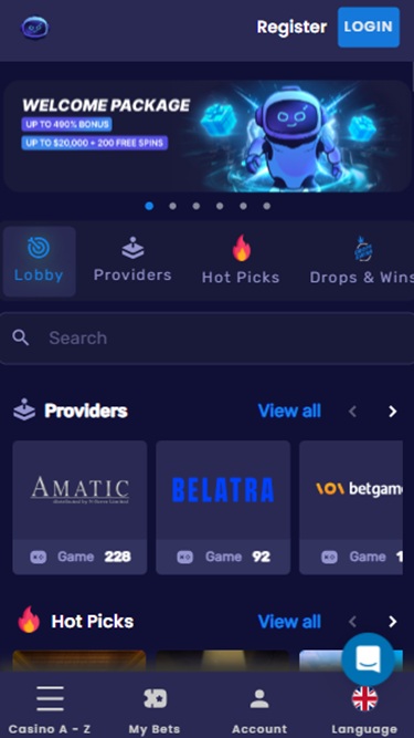 A seção promocional não é muito extensa, já que apenas jogadores que se cadastram pela primeira vez podem contar com um pacote de boas-vindas que pode ser usado em conjunto com os quatro primeiros depósitos em dinheiro real . Portanto, além de uma oferta introdutória para novos jogadores, outras oportunidades de jogo para jogadores ativos não estavam disponíveis no momento da redação desta análise.