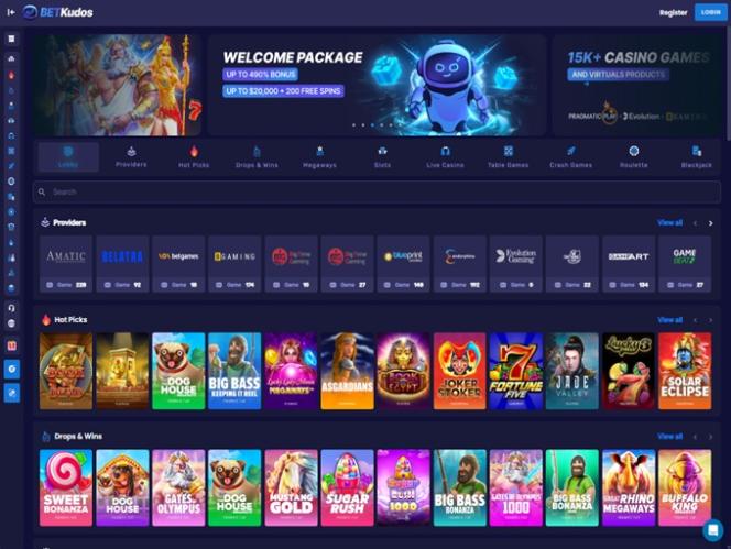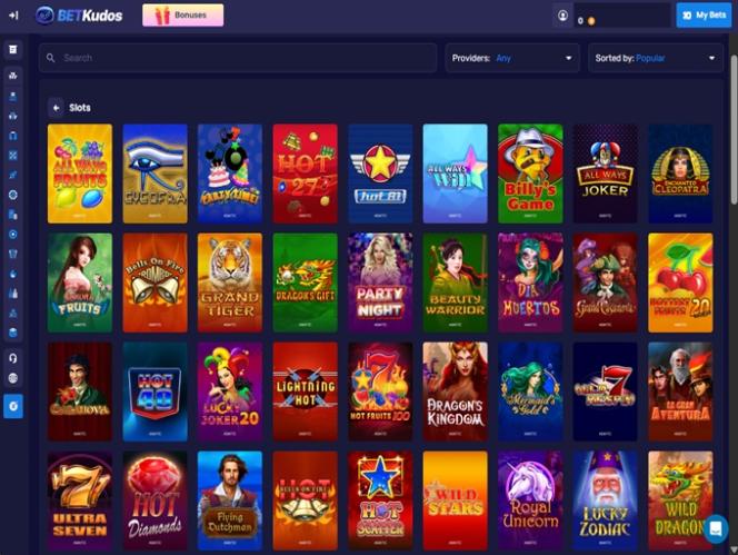 A página web apresenta um menu principal no lado esquerdo, enquanto a área principal é reservada para o conteúdo de jogos de azar disponível, que os jogadores poderão navegar facilmente, independentemente de terem acabado de descobrir o mundo dos jogos de azar online ou de serem experientes e saberem exatamente o que gostariam de experimentar no BetKudos.