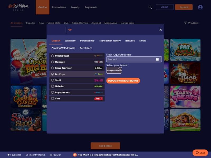 O BetOriginal é um cassino online que oferece uma quantidade impressionante de jogos aos seus jogadores. O conteúdo do cassino é fornecido por alguns dos gigantes da indústria de software para cassinos, mas o sucesso de um operador nem sempre é determinado apenas pela quantidade. É igualmente importante, ou até mais, escolher os títulos certos. E nesse quesito, o BetOriginal também se destaca.