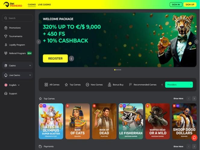 BetPRIMEIRO é um enorme site de jogos de azar que oferece uma extensa seleção de jogos de cassino, incluindo caça-níqueis com dinheiro real, jogos com crupiês ao vivo, jogos de crash e jogos de mesa, além de uma ampla variedade de opções de apostas esportivas. A marca convida jogadores da Alemanha, Canadá e Irlanda para o seu site, prometendo uma experiência de jogo completa com uma ampla variedade de jogos, bônus generosos, promoções empolgantes e disponibilidade de criptomoedas.