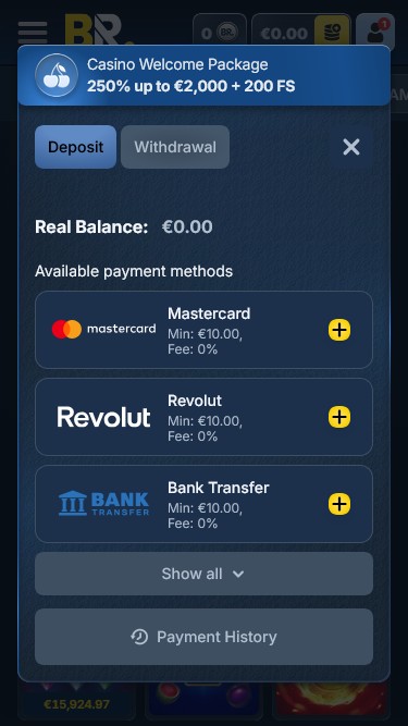 Os saques são processados de acordo com os limites mensais do cassino e levando em consideração o status de fidelidade do jogador.