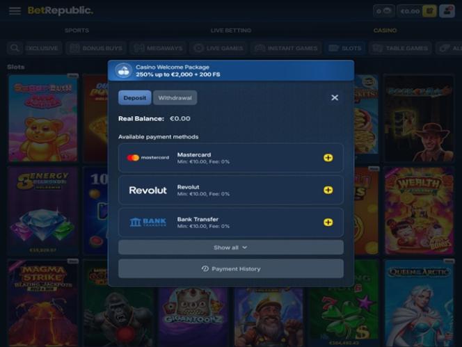 Após a festa de boas-vindas, o cassino BetRepublic preparou diversas promoções de recarga para tornar a semana ainda mais emocionante. Aproveite bônus como rodadas extras, ofertas de depósito correspondente, cashback, odds aumentadas, apostas sem risco, aumento de apostas acumuladas e muito mais.