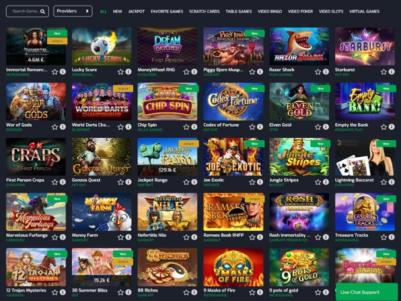 Tudo por aqui parece super organizado, e os jogadores terão a oportunidade de navegar facilmente pelo conteúdo, que inclui mais de 8.000 títulos diferentes em categorias como jogos novos , jackpot, compra de bônus, Megaways, Multiways, jogos virtuais, jogos de mesa, vídeo bingo, vídeo pôquer, caça-níqueis, raspadinhas, jogos de crash, jogos rápidos, arcade, jogos ao vivo e muito mais.