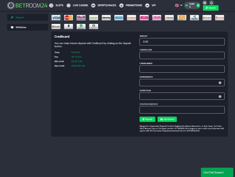 Como já mencionamos, o site da Betroom24 está repleto de informações valiosas. Há também uma página de perguntas frequentes com informações adicionais sobre jogos, métodos de pagamento e contas, e é possível entrar em contato com a equipe de suporte por chat ao vivo e e-mail.