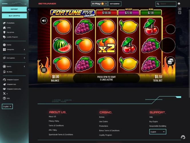 O Betrunner Casino é um site de jogos de azar voltado para criptomoedas, com uma ampla oferta de jogos e atividades de cassino para seus jogadores, incluindo caça-níqueis com dinheiro real, jogos com crupiês ao vivo, jogos de mesa, jogos de crash e apostas esportivas. A marca rapidamente conquistou a atenção dos jogadores devido à sua dedicação em oferecer bônus e promoções vantajosas e construir uma comunidade enorme por meio de sua presença ativa nas redes sociais e no cenário de jogos de azar.