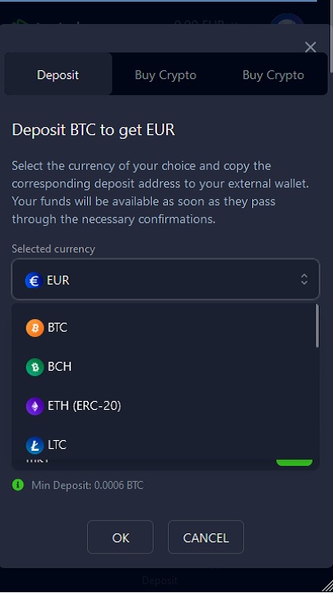💰 Depósito mínimo0.00025 BTC