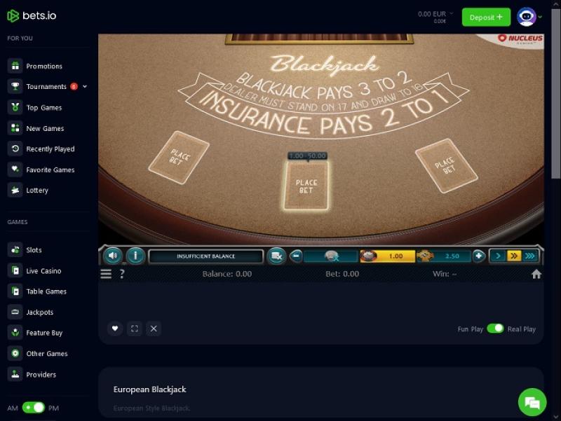 bets.io Casino não recebeu o endosso do Wizard of Odds.