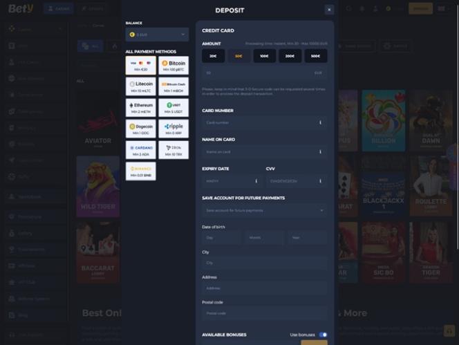 Resgatar um pacote de boas-vindas é uma excelente oportunidade para qualquer jogador que deseje começar com facilidade, com menos riscos e mais tempo disponível para explorar os jogos de cassino. Além disso, no Bety.com, os jogadores podem esperar uma generosa oferta introdutória, reservada para os três primeiros depósitos no cassino.