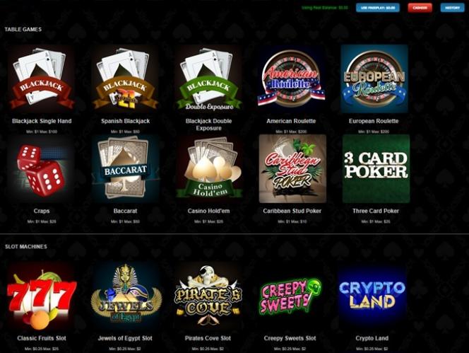 Aqui estão alguns jogos interessantes disponíveis: Blackjack Single Hand, Jacks or Better , Roleta Americana, Craps, Jewels of Egypt Slot, Beat the Bookie Slot, Bacará, Deuces Wild, Pirates Cove Slot, Creepy Sweets Slot, Crypto Land, Casino Hold'em…