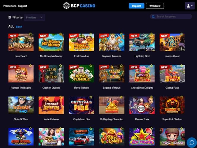 Os jogos de cassino online oferecidos por esta marca são desenvolvidos por fornecedores de software como Eurasian Gaming, Reevo, Qora Gaming, Dragon Gaming e Popiplay. Esses desenvolvedores oferecem uma seleção diversificada de jogos que abrangem a maioria das categorias populares de cassino.