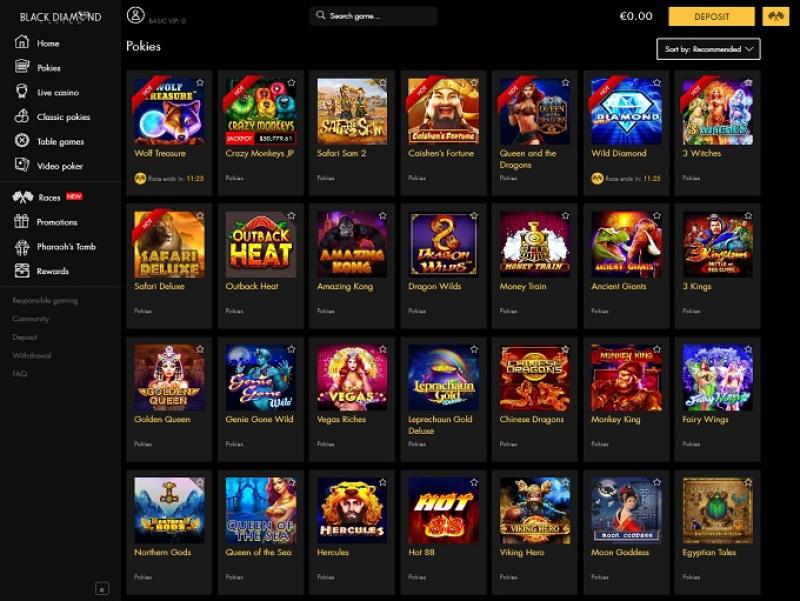 Além dos jogos de cassino tradicionais, o Black Diamond oferece jogos de keno e raspadinhas aos seus jogadores.