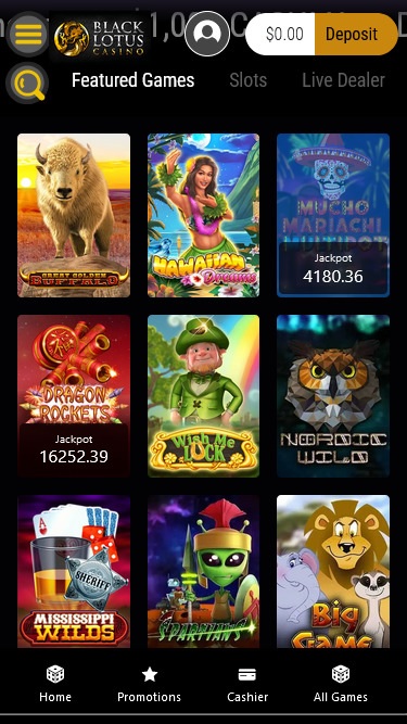 Abaixo está uma lista das promoções atualmente oferecidas no Black Lotus Casino.