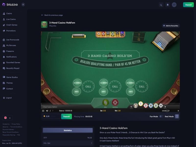 Para aqueles que não se interessam por jogos de caça-níqueis, os operadores da Blazzio garantiram que ainda seja possível se divertir com jogos de mesa como Roleta, Blackjack e Bacará. Eles também podem optar por jogar esses tipos de jogos com crupiês ao vivo, se assim desejarem.
