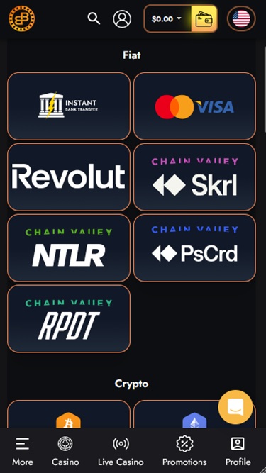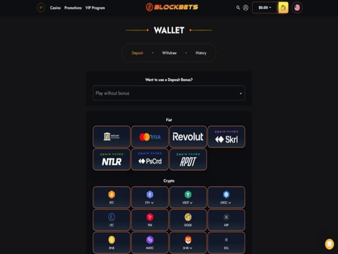 Aqui, os jogadores podem usar opções bancárias tradicionais, como cartões de crédito e débito, bem como sistemas de pagamento com criptomoedas, como Cardano, Bitcoin, Dogecoin, Tether, Ethereum , etc.