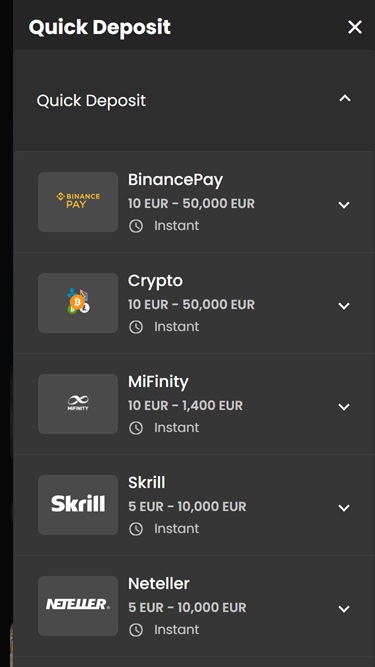 💰 Depósito mínimo€5 /€10 (Crypto)