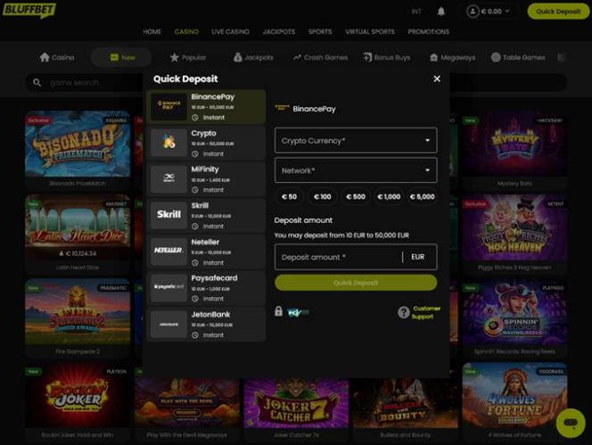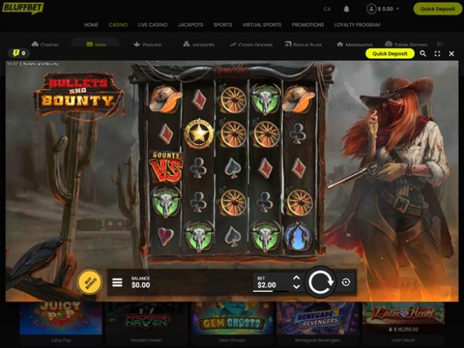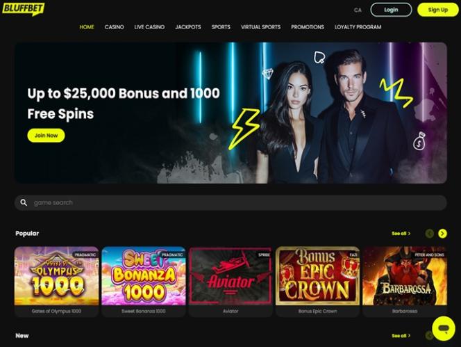 A Bluffbet é um site de jogos de azar e uma enorme casa de apostas esportivas que oferece uma seleção robusta de jogos de cassino e opções de apostas esportivas. A marca recebe principalmente jogadores do Canadá e promete oferecer a eles uma gama completa de opções de jogos, incluindo caça-níqueis com dinheiro real, jogos de crash, dealers ao vivo e jogos de mesa, tudo isso com um sólido programa promocional com bônus e diversas recompensas.
