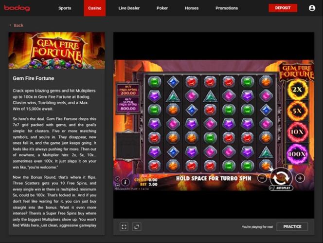 Além dos jogos de cassino tradicionais, a Bodog oferece uma seção completa de apostas esportivas, serviços de corridas de cavalos e um cliente para pôquer.